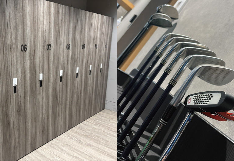 レンタル用のロッカー、クラブ、シューズ、グローブ(男女用)をご用意。